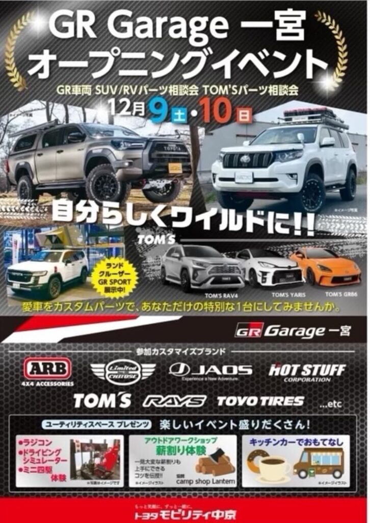 トヨタモビリティー中京 GRgarage一宮様主催のオープニングイベントが開催します!