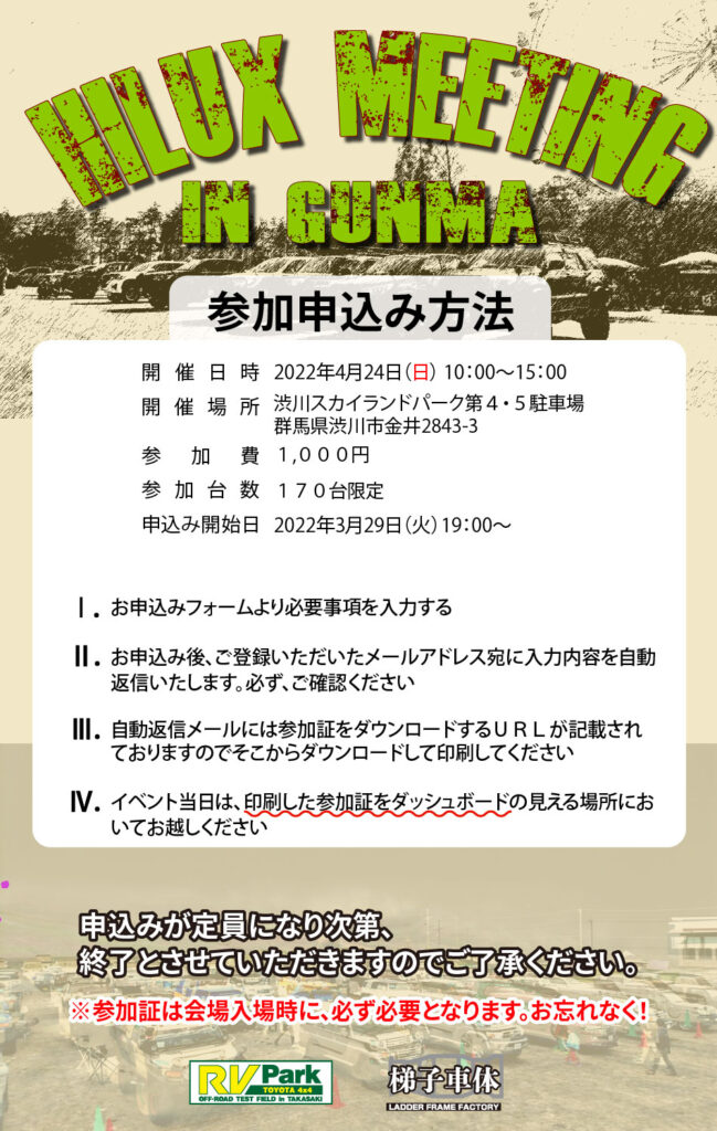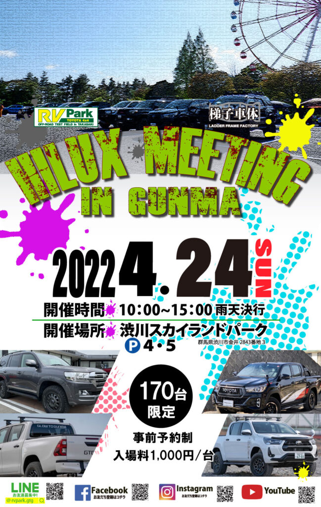 Hilux Meeting in Gunmaが4月24日(日)に開催されます。