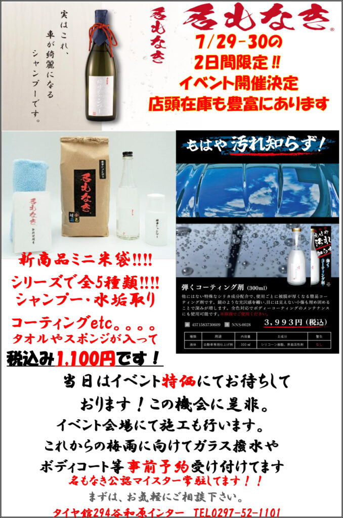 茨城県のタイヤ館294谷和原インター店様にて「名もなき」イベントが開催されます!
